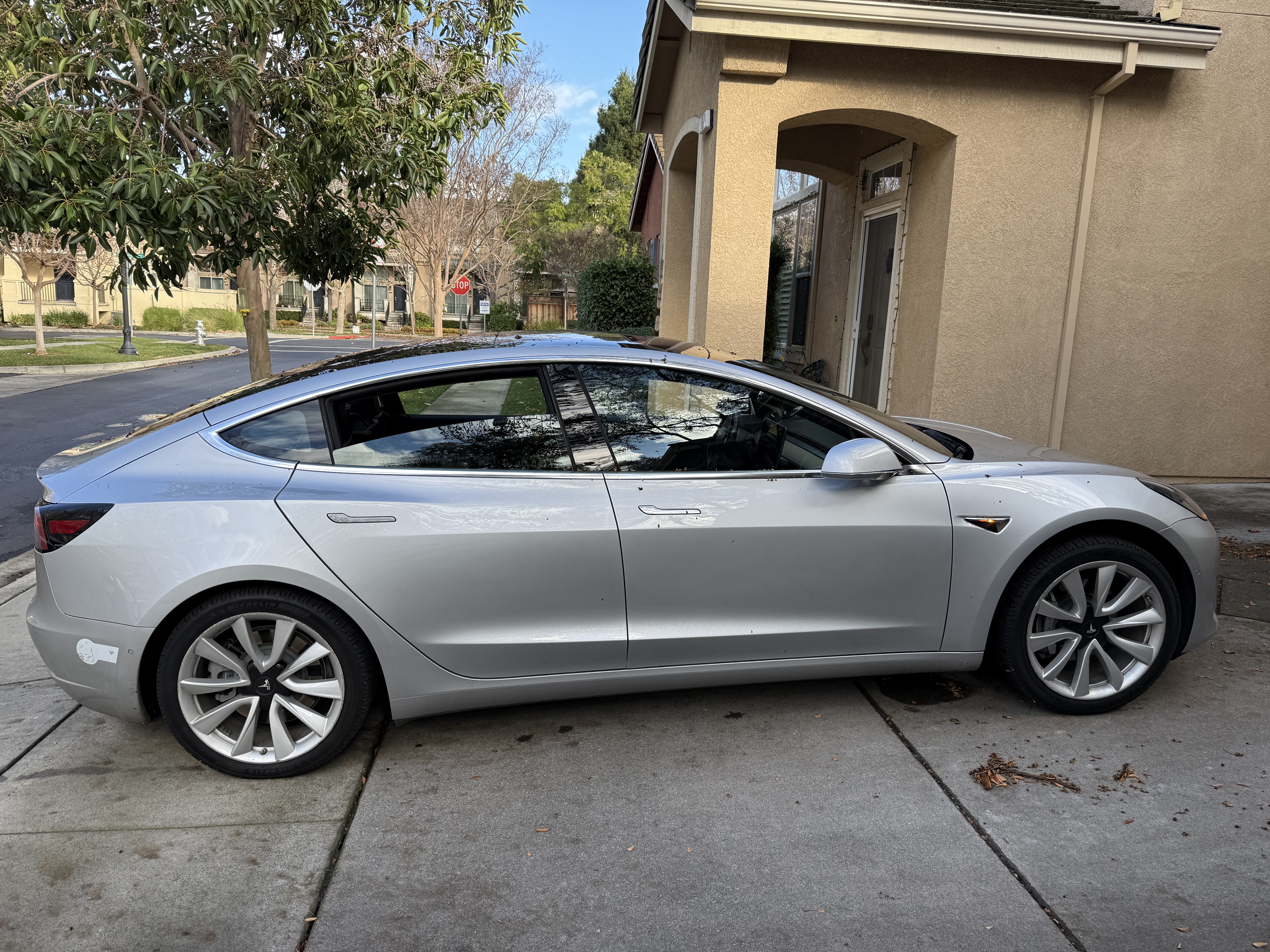 2018 RWD Long Range Model 3 - single owner - Excellent condition - interior and exterior - Rare Silver color (not produced for any model anymore) - Black interior - premium connectivity - 91800 miles - 100% Battery Range at 273 miles. 80% at 212 miles. - 1 year old 4 new Michelin tires KBB - $14.4K-$17.9k Have an offer for $15.5k - OEM front bumper and hood replaced in last 30 days due to a fender bender in November - heat protector screen on glass roof